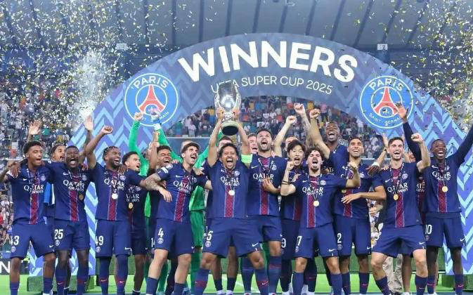 不久前,大巴黎成功击败热刺,捧得2025年欧洲超级杯冠军,这也是他们今年获得的第五个重要奖杯。如果一切顺利,到年底,他们将成为继巴萨和拜仁之后的第三个六冠王。从某种意义上说,大巴黎已然成为了全欧洲乃至全球最具看点的球队。虽然在世俱杯决赛中不敌切尔西略显遗憾,但这丝毫不能掩盖他们在24到25赛季中的光辉表现。赢得这个欧洲超级杯不仅是大巴黎的成就,亦是法甲的荣耀。
